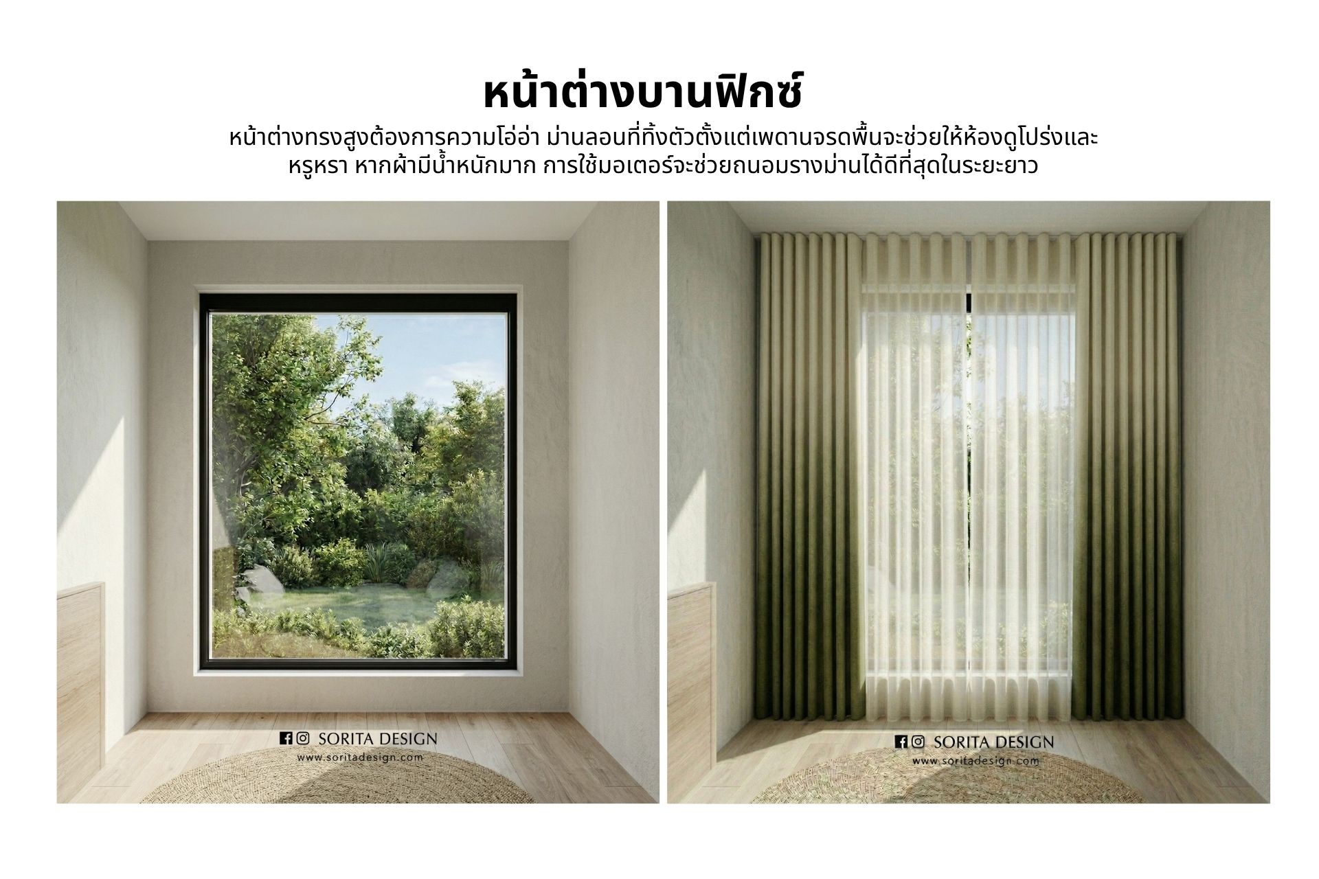 - ม่านที่เหมาะสม: ม่านพับ (Roman Blinds), ม่านม้วน (Roller Blinds)